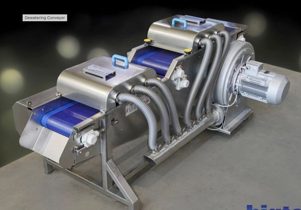 An air drying conveyor, crafted by leading food processing or packaging food processing machinery manufacturers, uses controlled air blowers on a food-grade belt to remove surface water from vegetables and fruits, preserving quality for food processing and packaging. This conveyor equipment ensures efficient post-washing preparation.