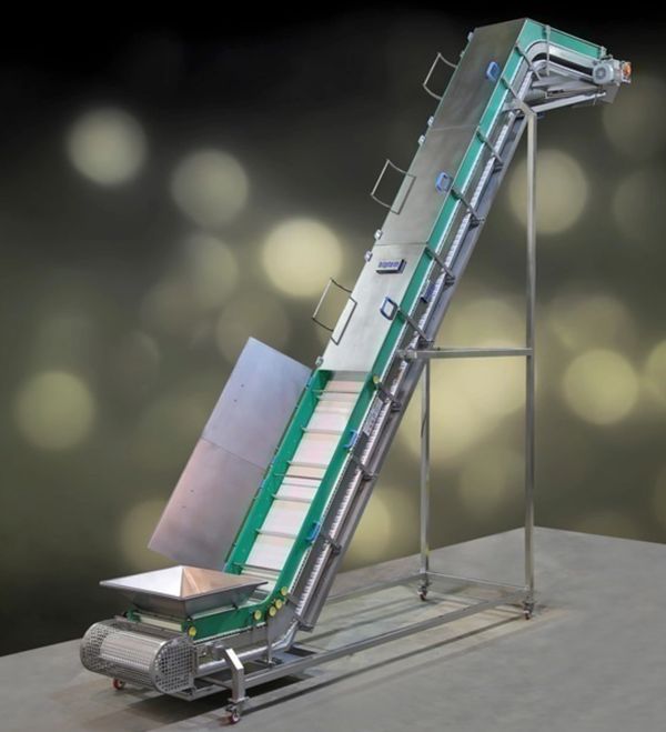 A hopper elevator, designed by top food processing or packaging food processing machinery manufacturers, lifts and transports bulk vegetables or fruits from lower to higher levels using a hopper attached to conveyor equipment. Featuring adjustable height, food-grade stainless steel, and variable speed controls, it ensures gentle handling and precise output for food processing and packaging lines.