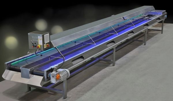 An inspection conveyor, built by leading food processing or packaging food processing machinery manufacturers, moves vegetables or fruits along a belt for quality control, enabling defect detection by workers or cameras. With adjustable speed, food-grade stainless steel, and ergonomic design, it integrates with conveyor equipment to enhance food processing and packaging efficiency.